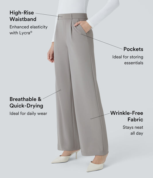 High Waisted Tummy Control Pockets Wide Leg Micro Waffle Work Pants