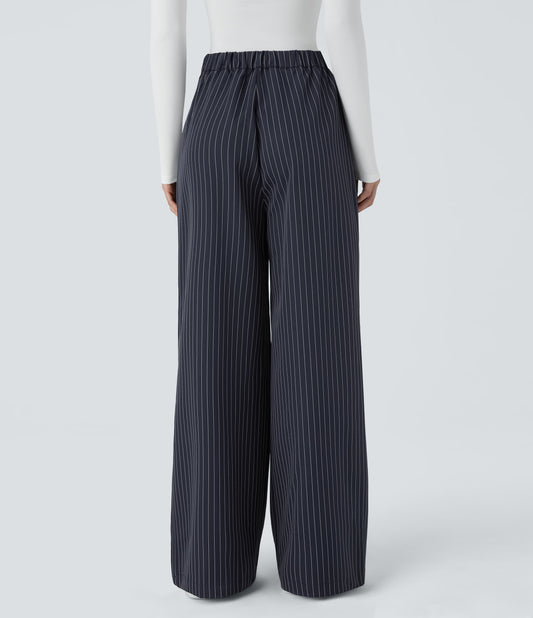 High Waisted Zipper Pocket Wide Leg Striped Work Pants