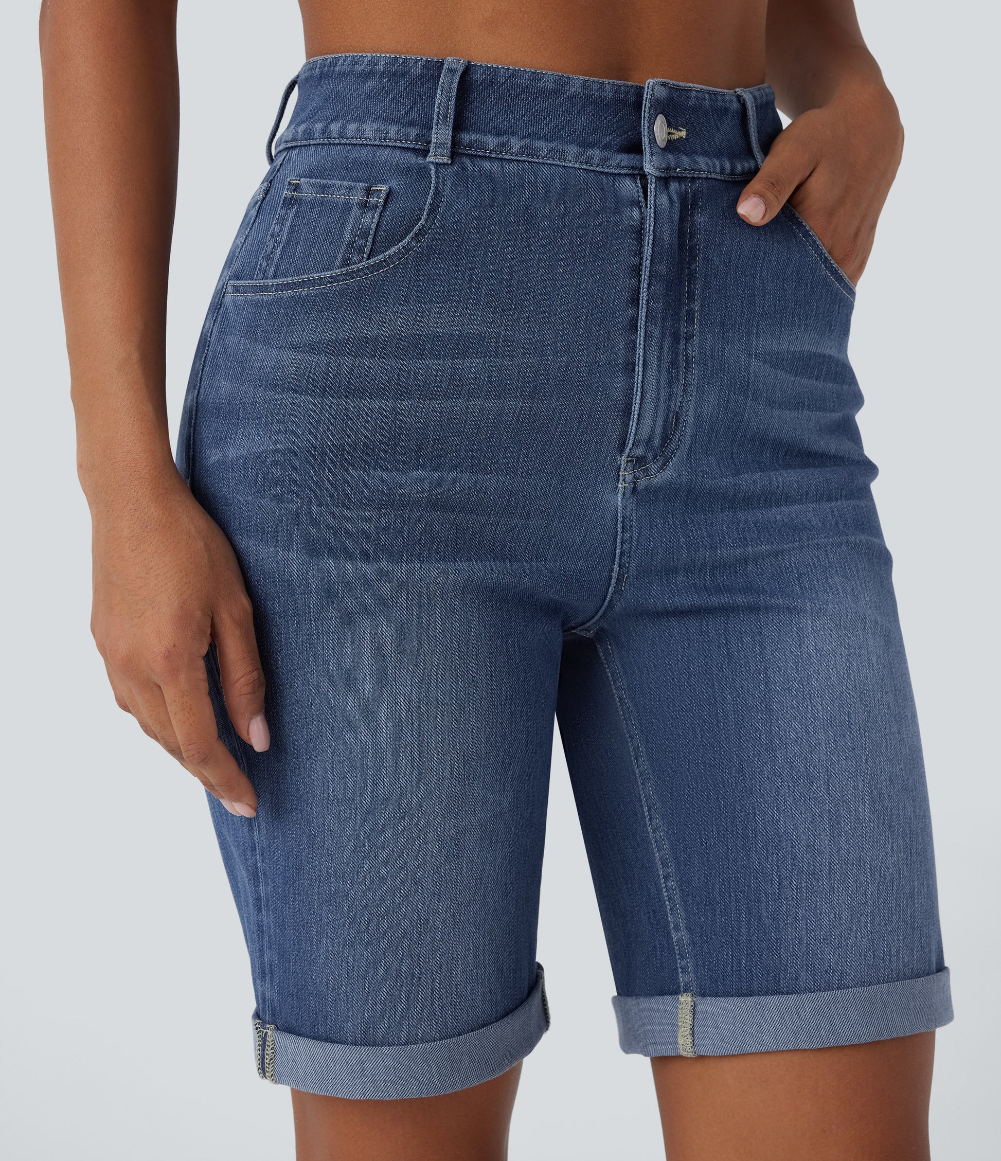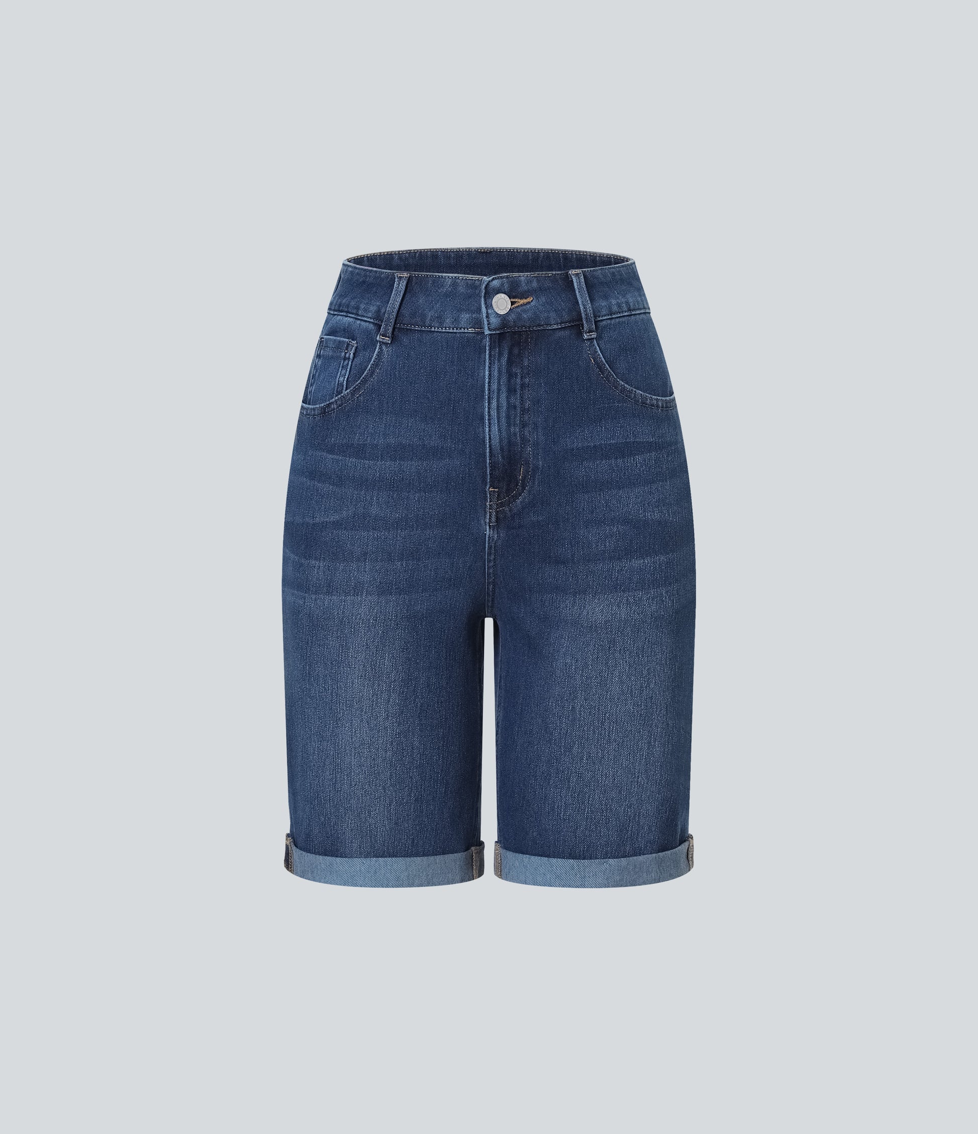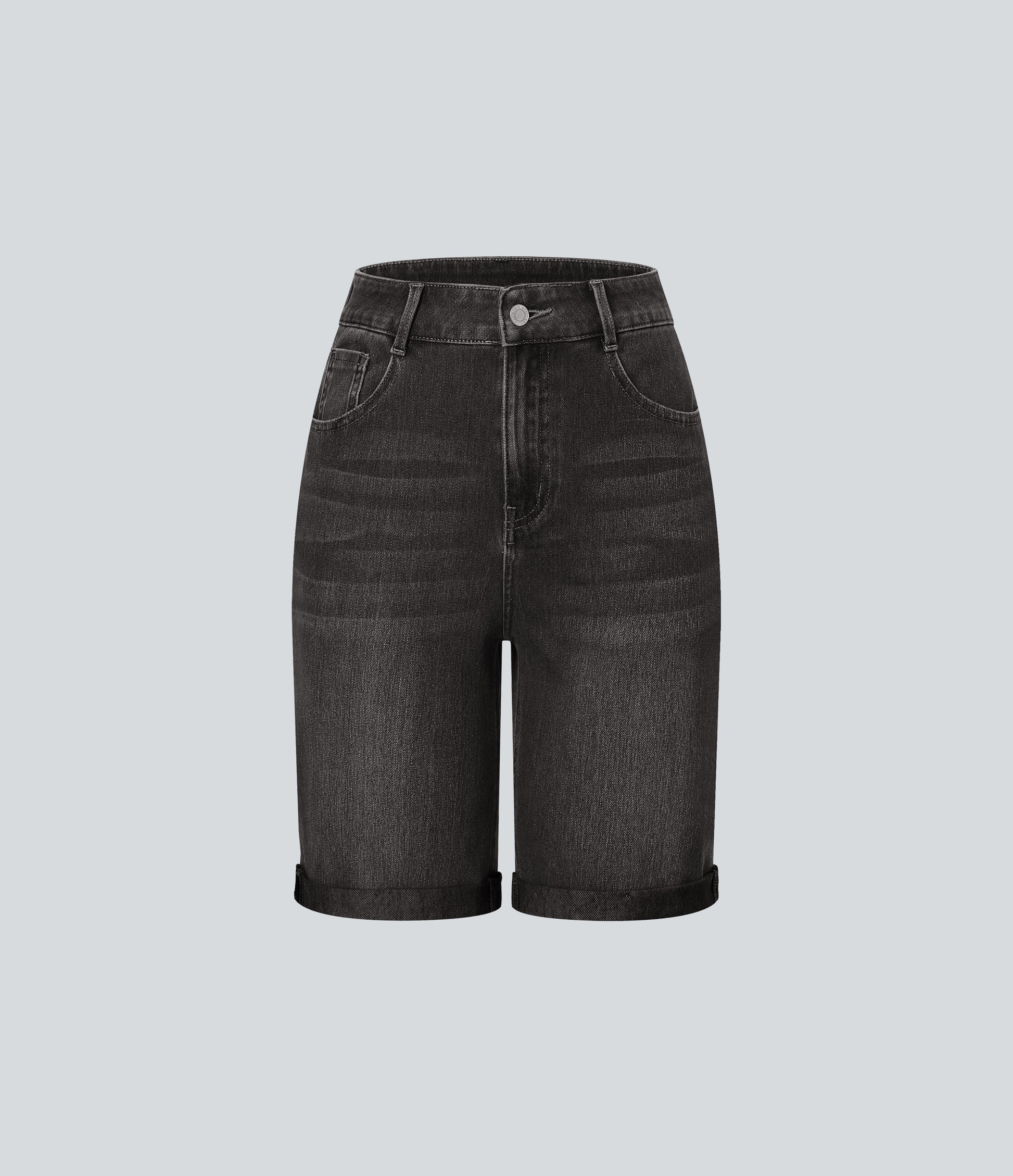 Lässige Bermuda-Shorts aus gewaschenem Denim mit hoch taillierten Taschen und gerolltem Saum