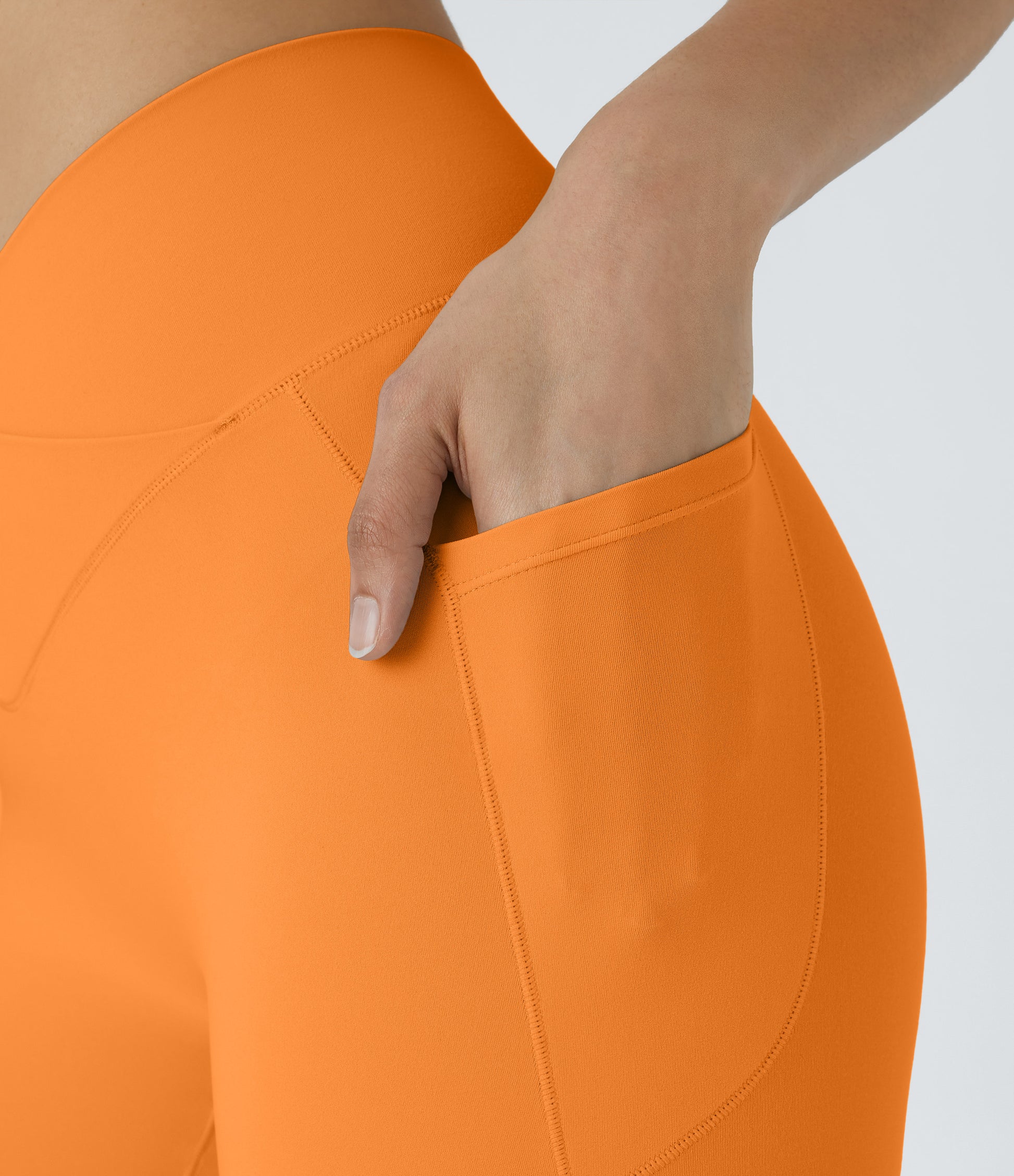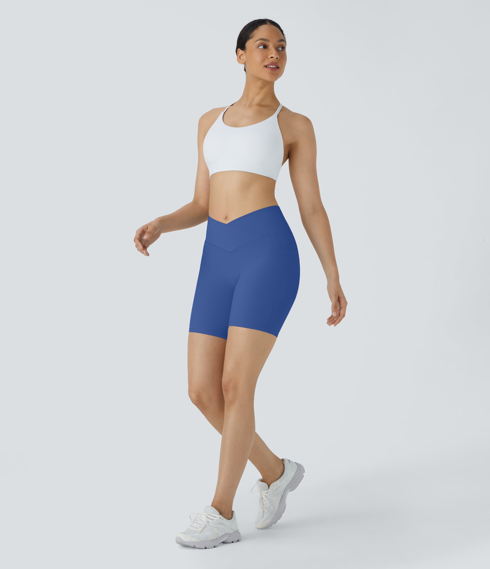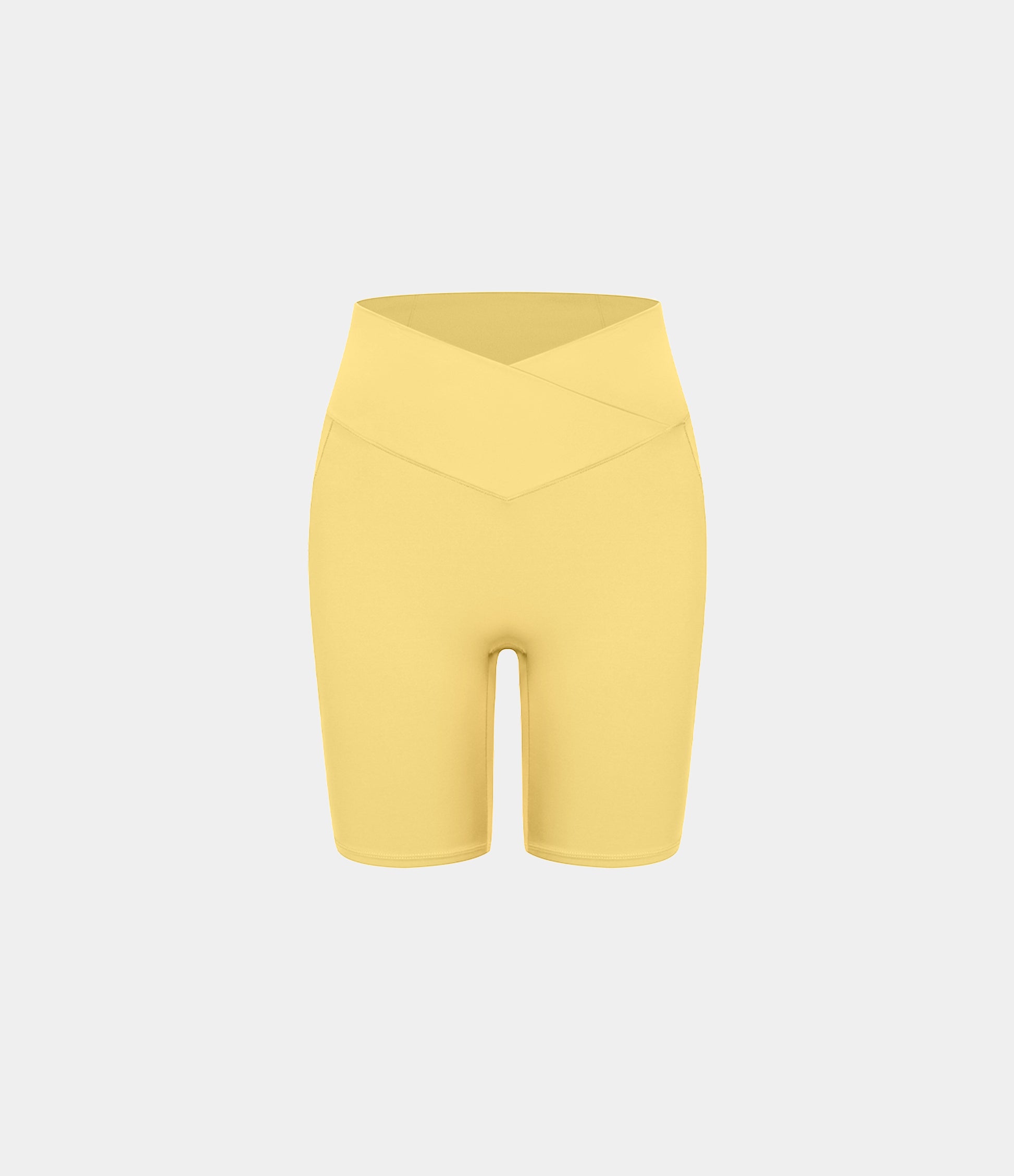 Høy midje, krysslommer i yoga-biker-shorts, 18 cm – UPF50+