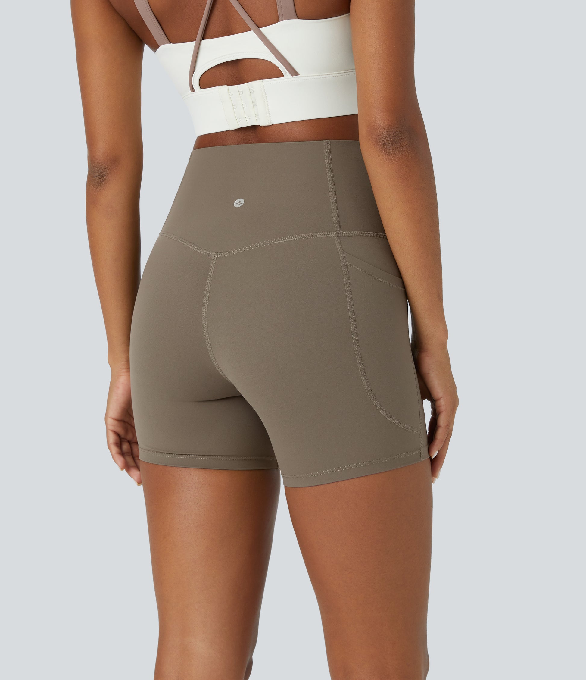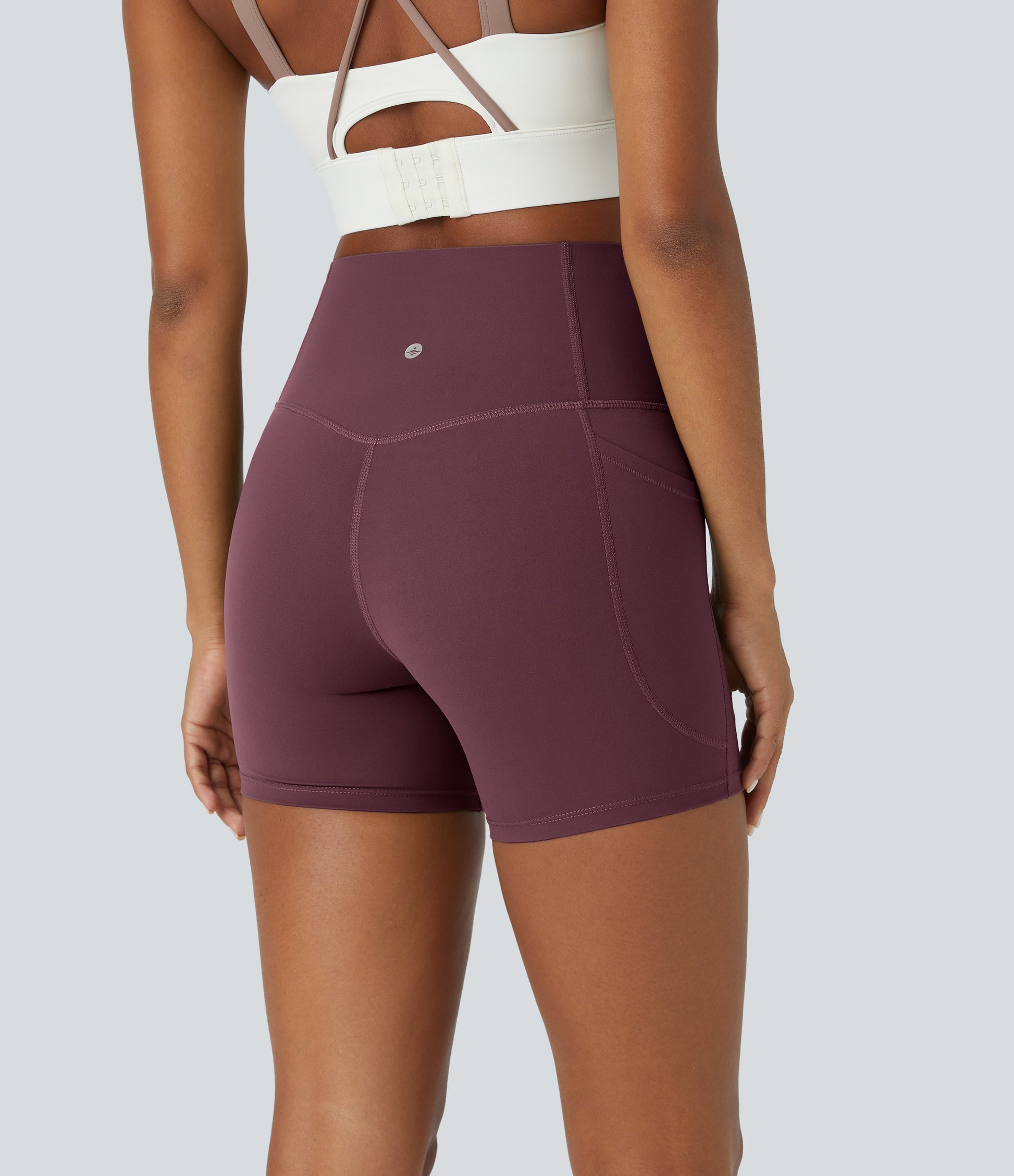 Høy midje magekontroll sidelommer formende treningsbiker shorts 12,5 cm