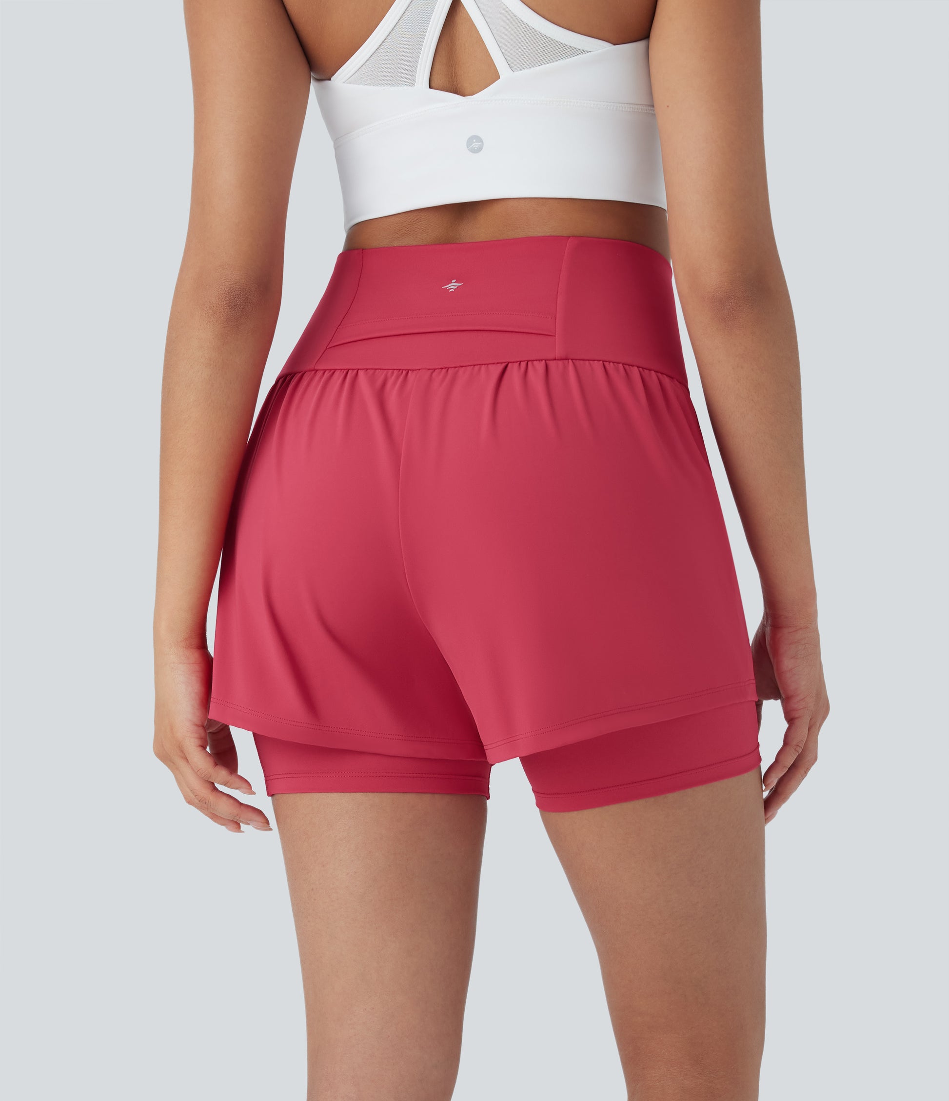 Luftige 2-i-1 yogashorts med superhøy midje og kul berøring, 13 cm og lommer
