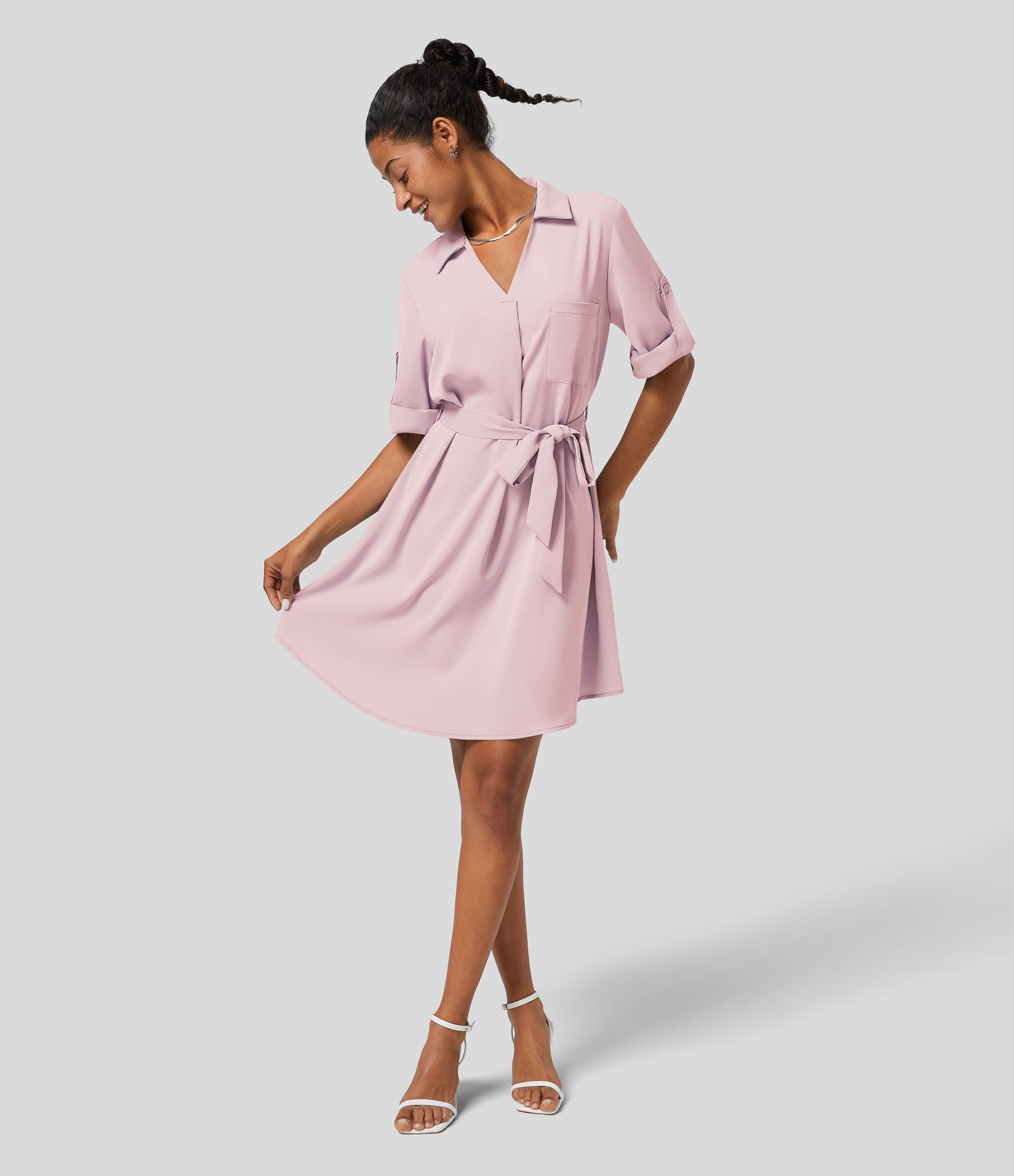 Roll Up Sleeve Belted Relaxed Work Shirt Dress