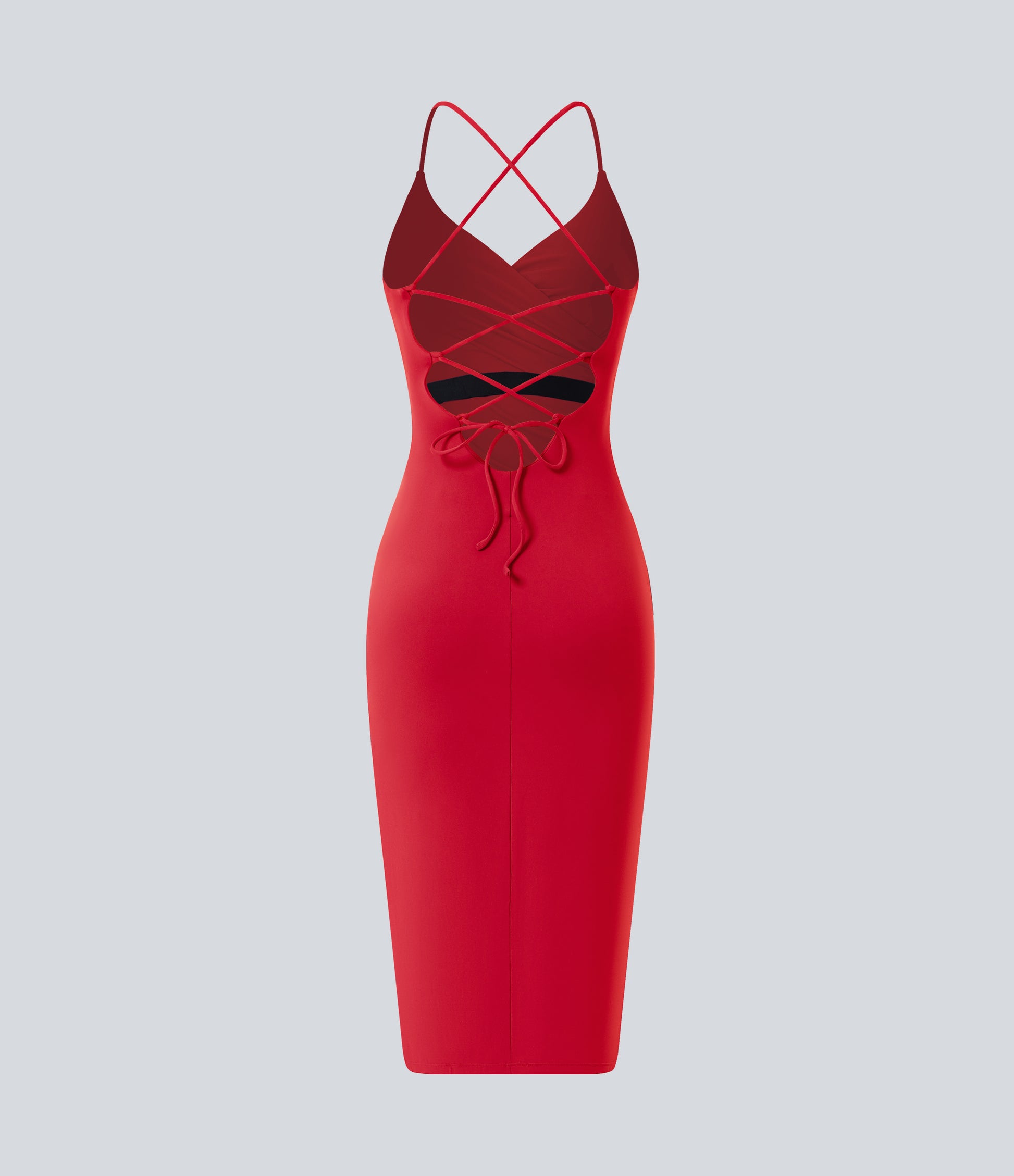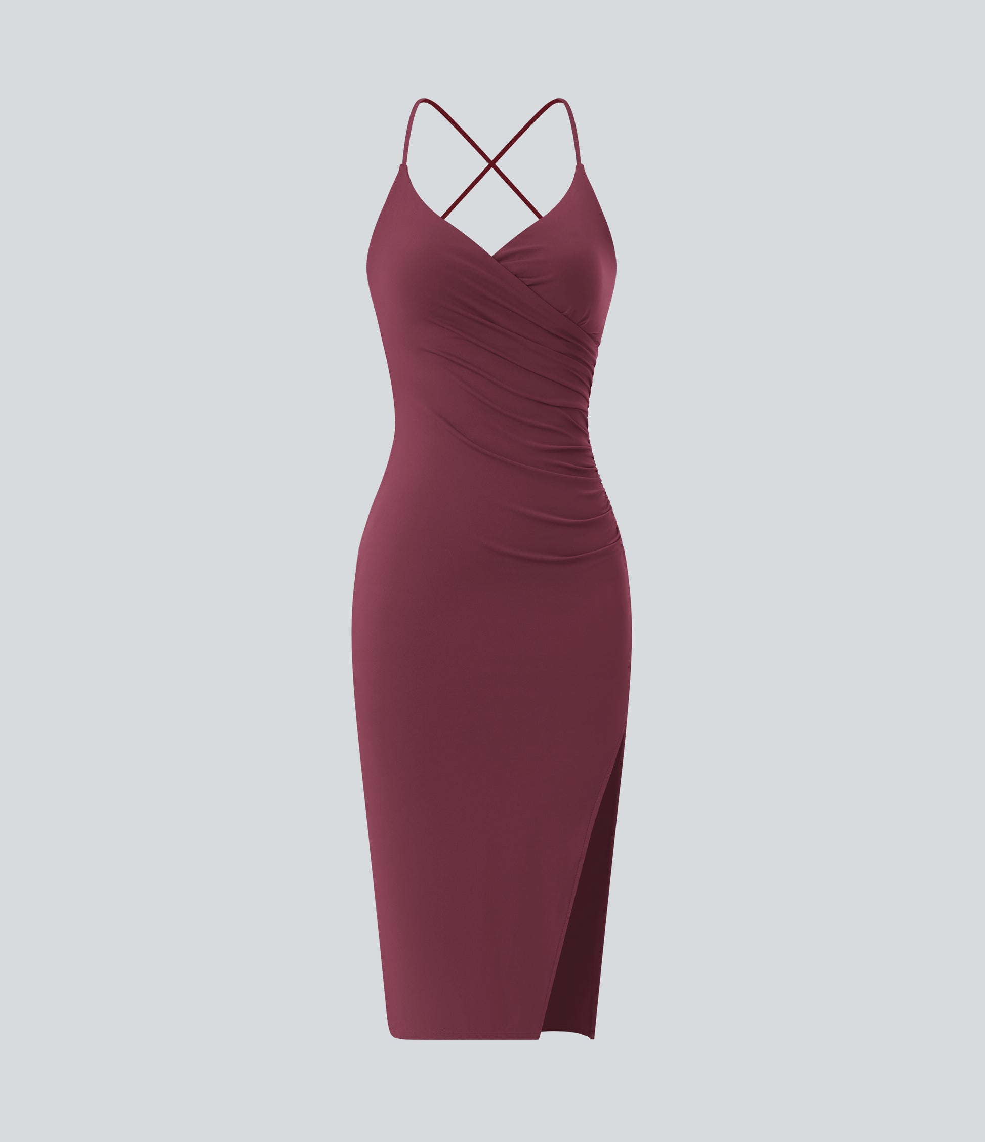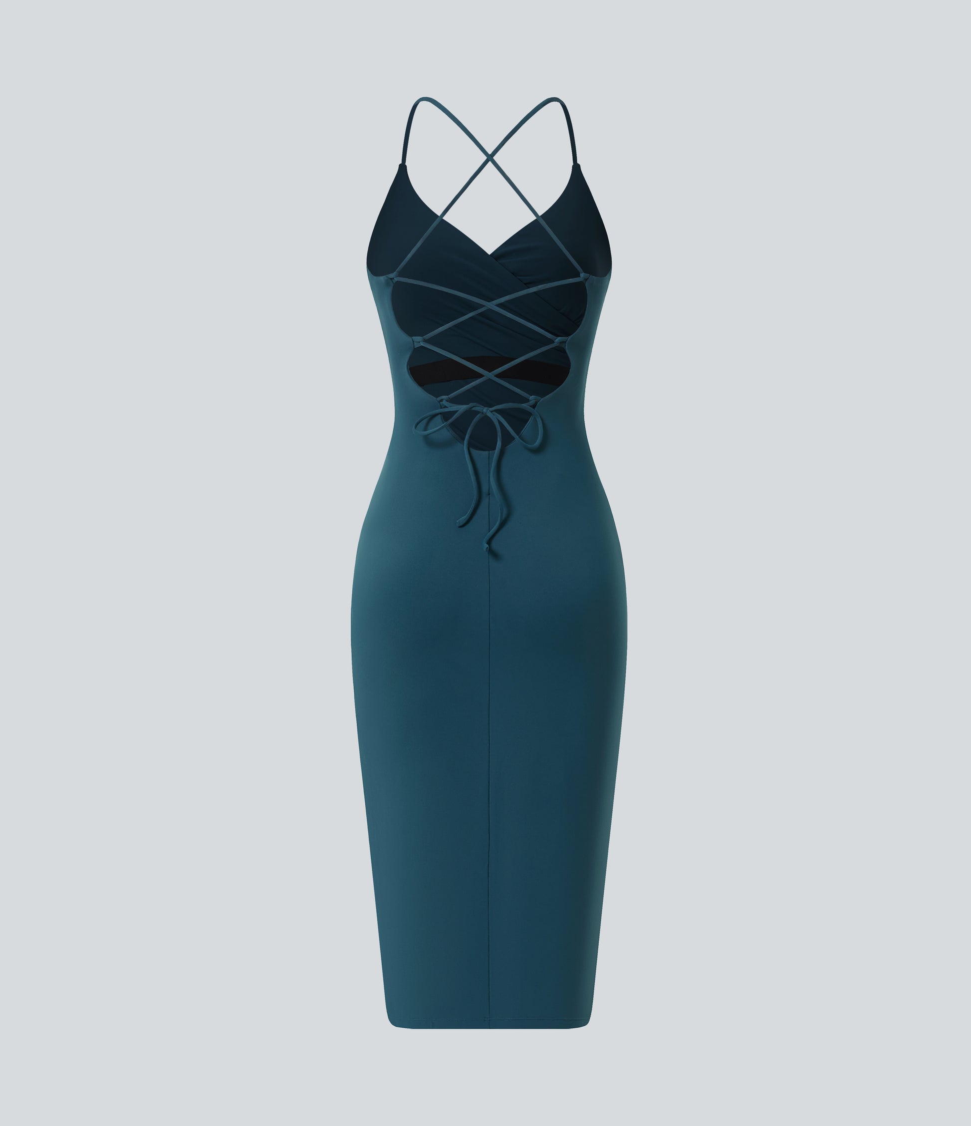 Crossover Ruched Lace Up Bodycon Cool Touch Dress-UPF50+