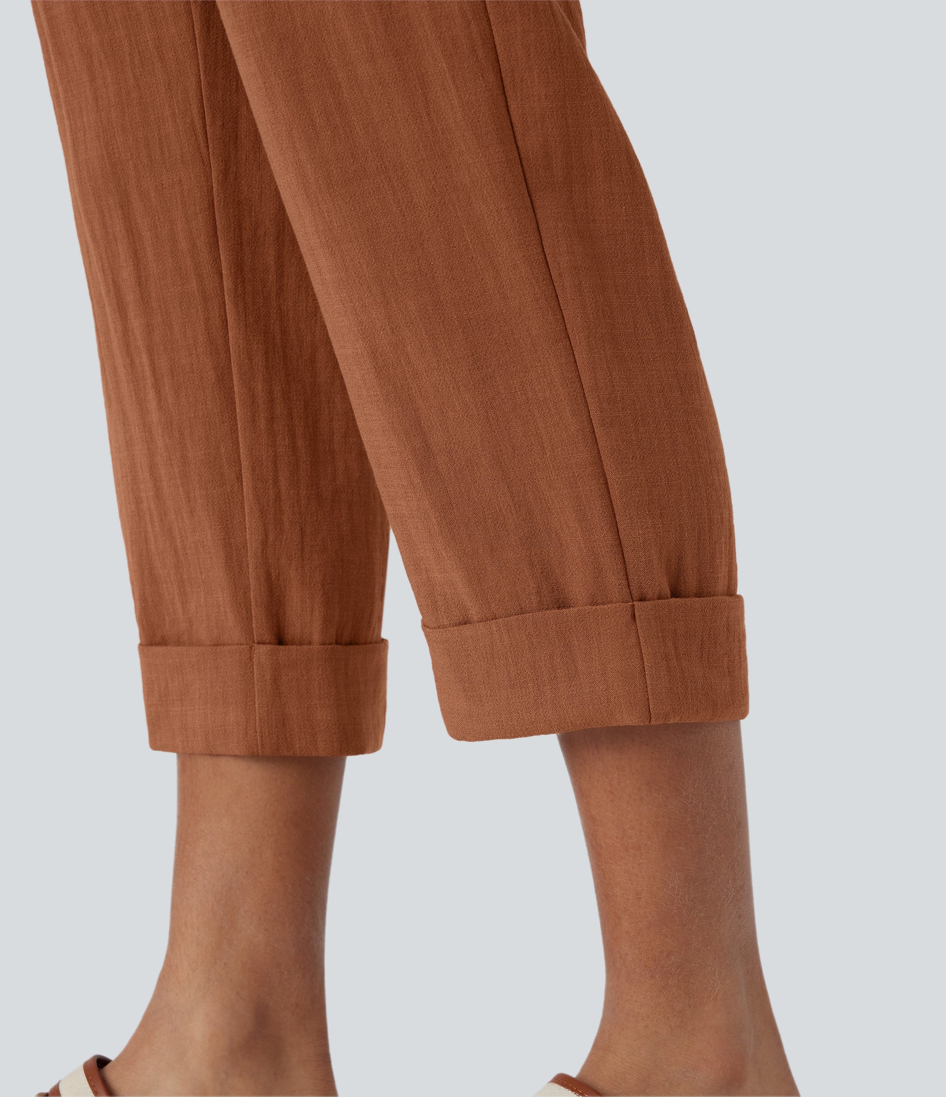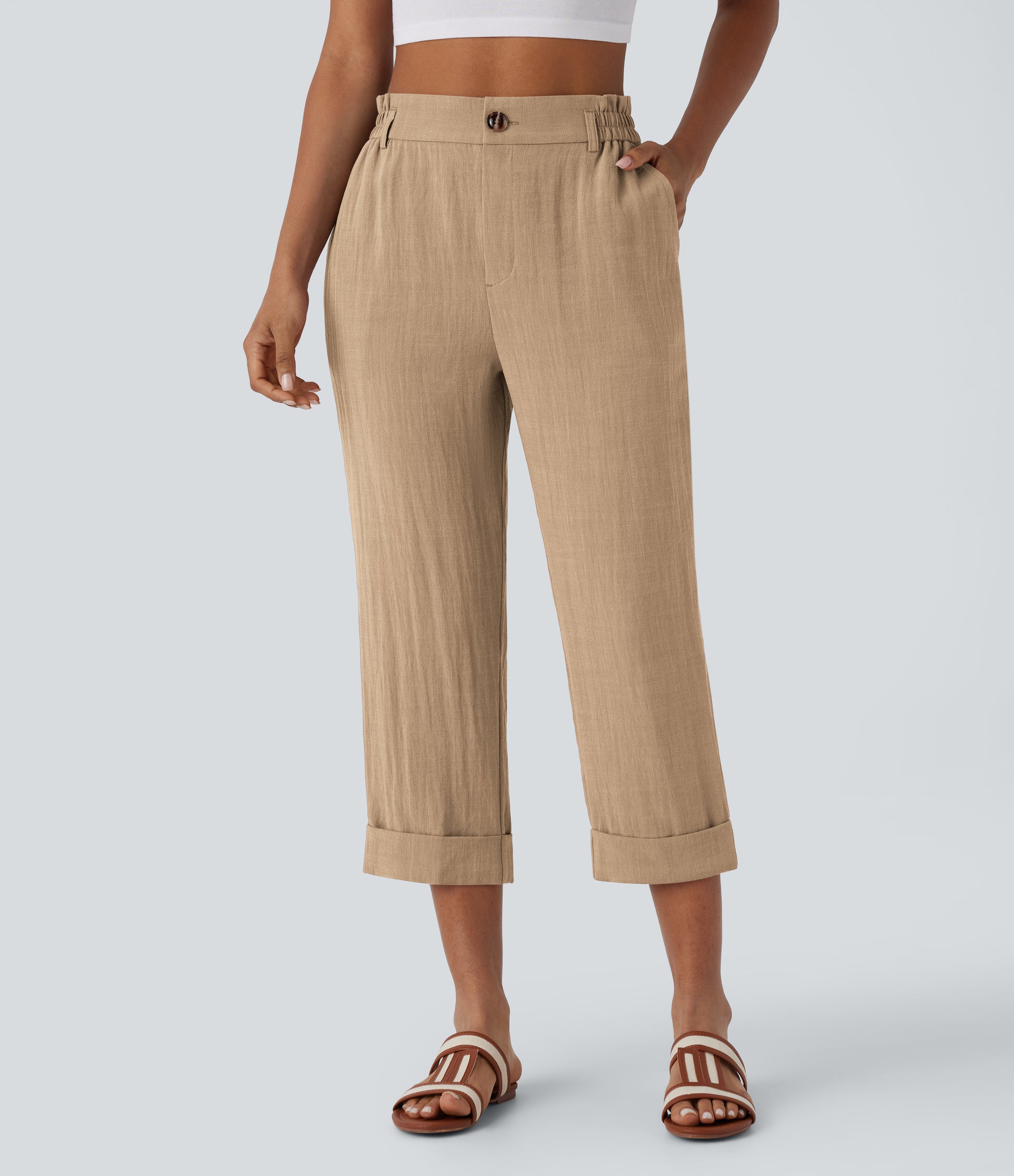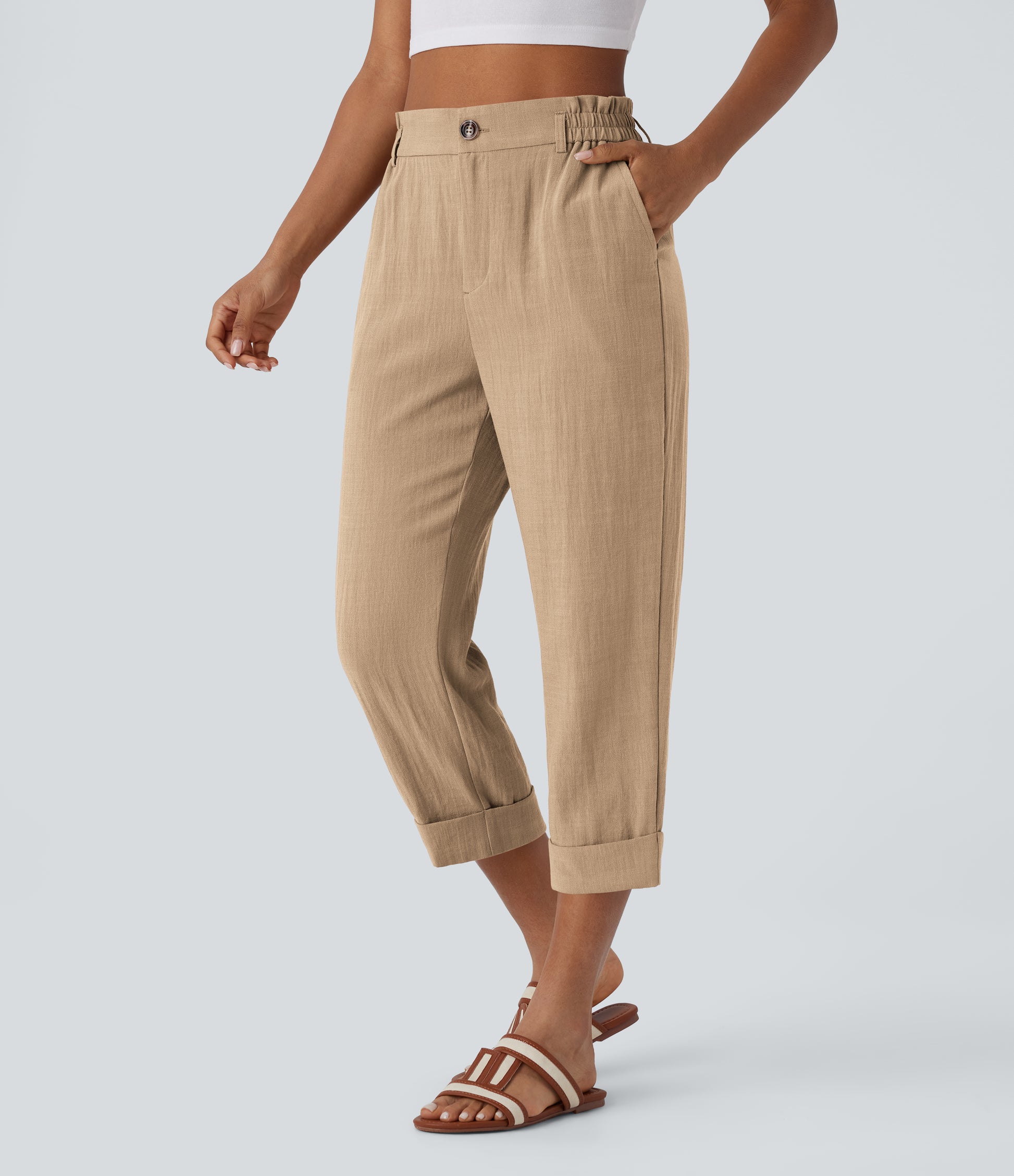 High Waisted Zipper Pocket Capri Linen-Feel Pants
