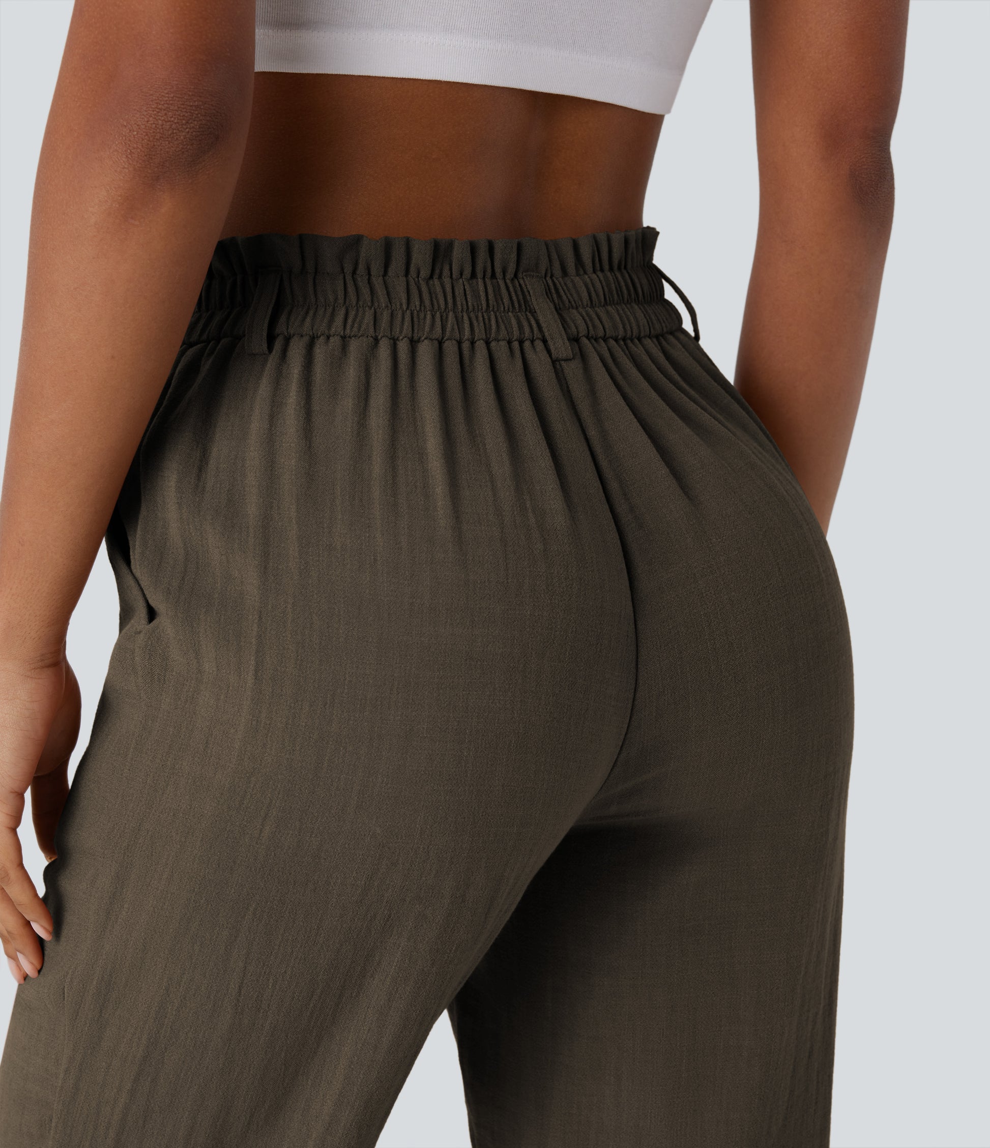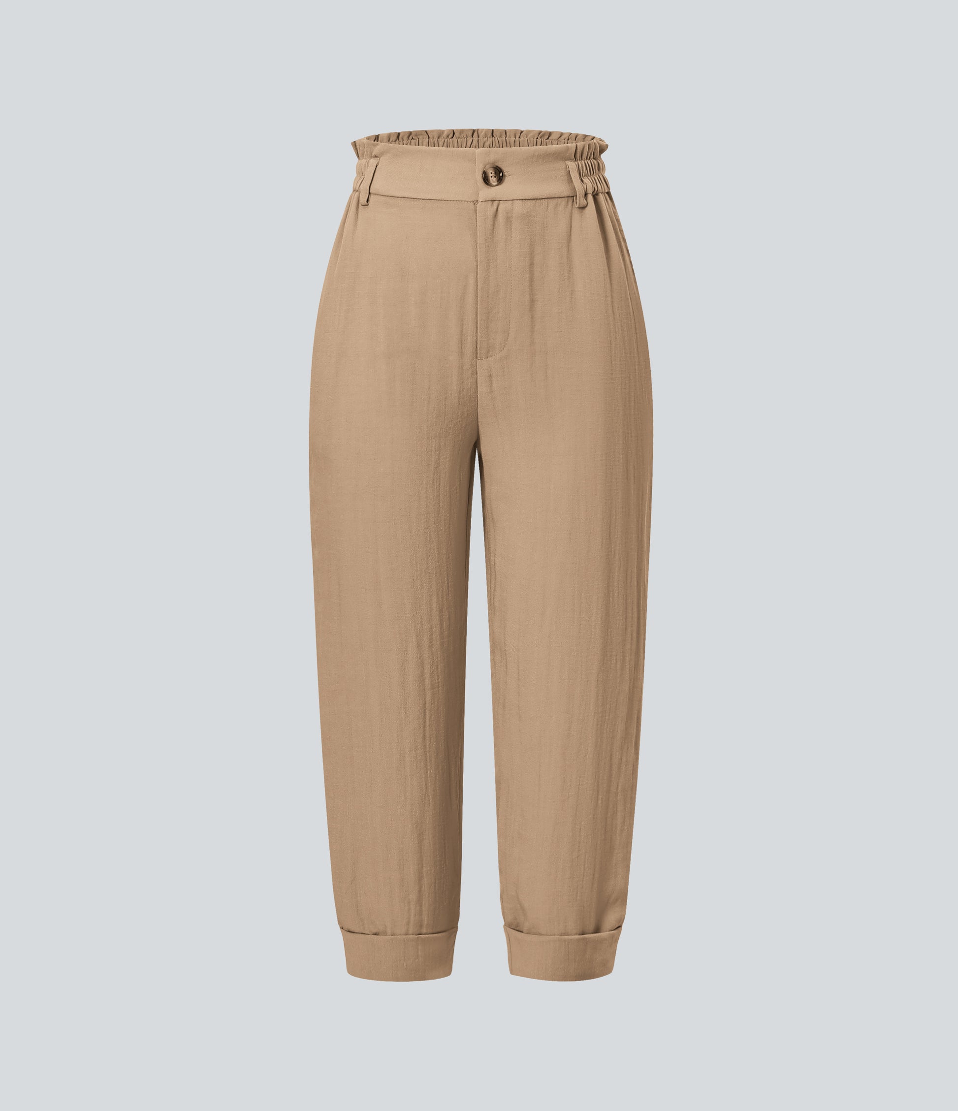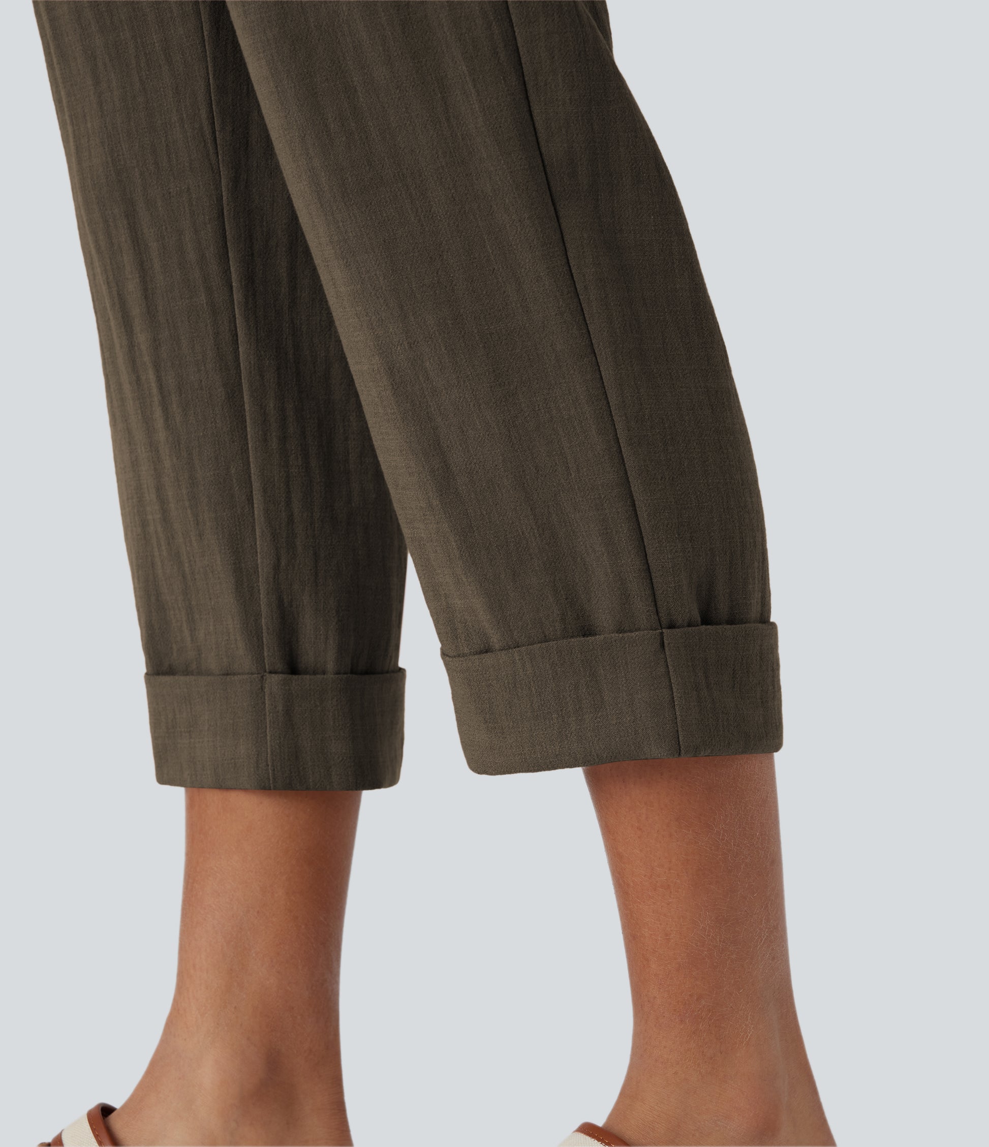 High Waisted Zipper Pocket Capri Linen-Feel Pants