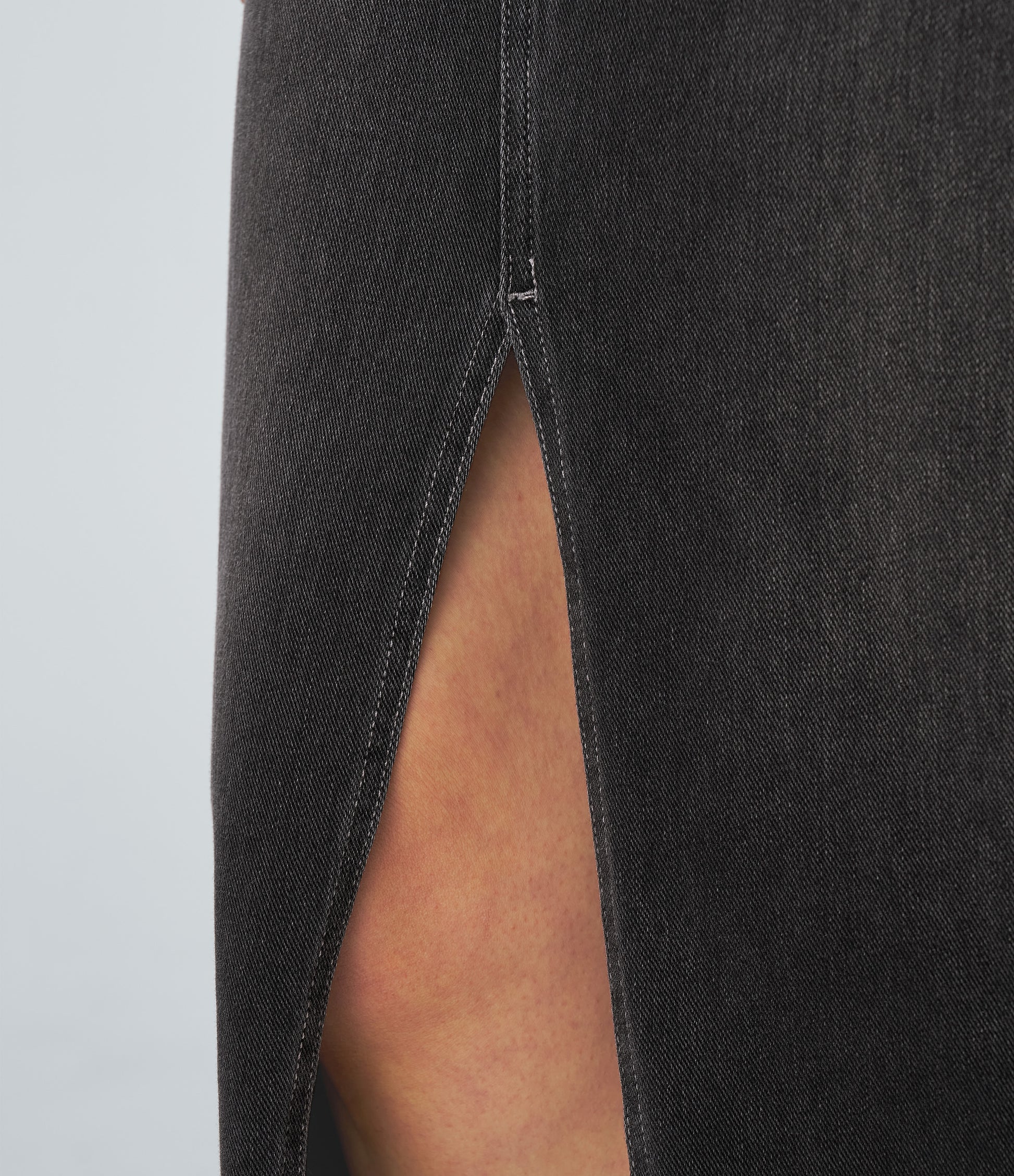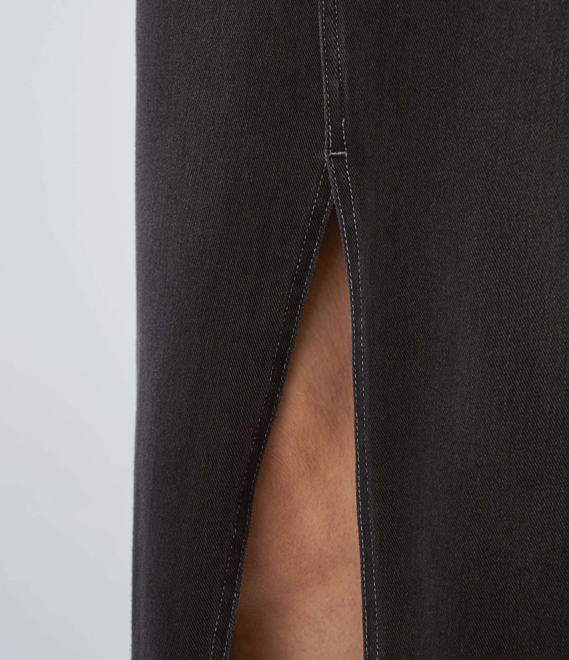 - The slit gives that perfect amount of leg show and an elongated silhouette.