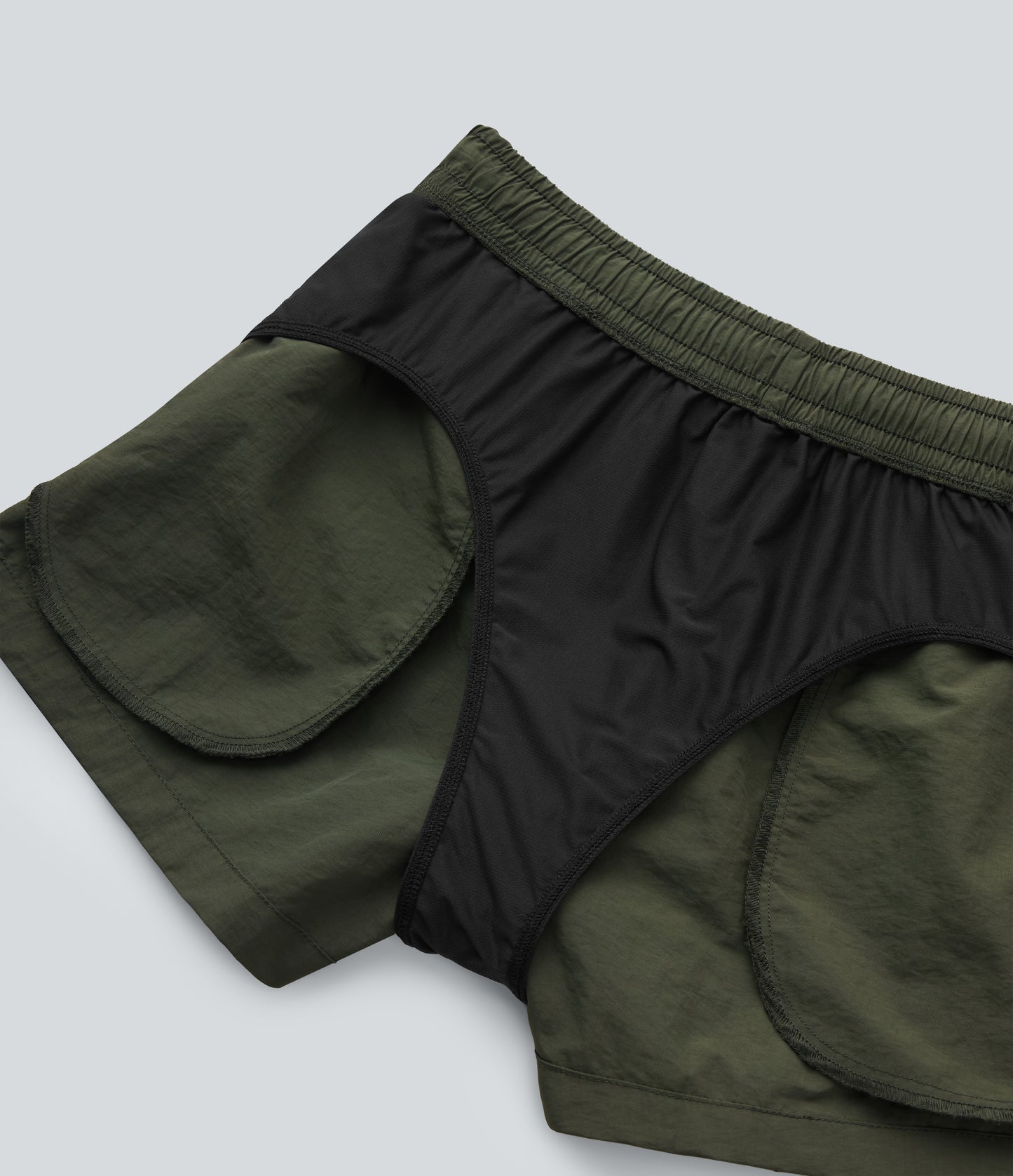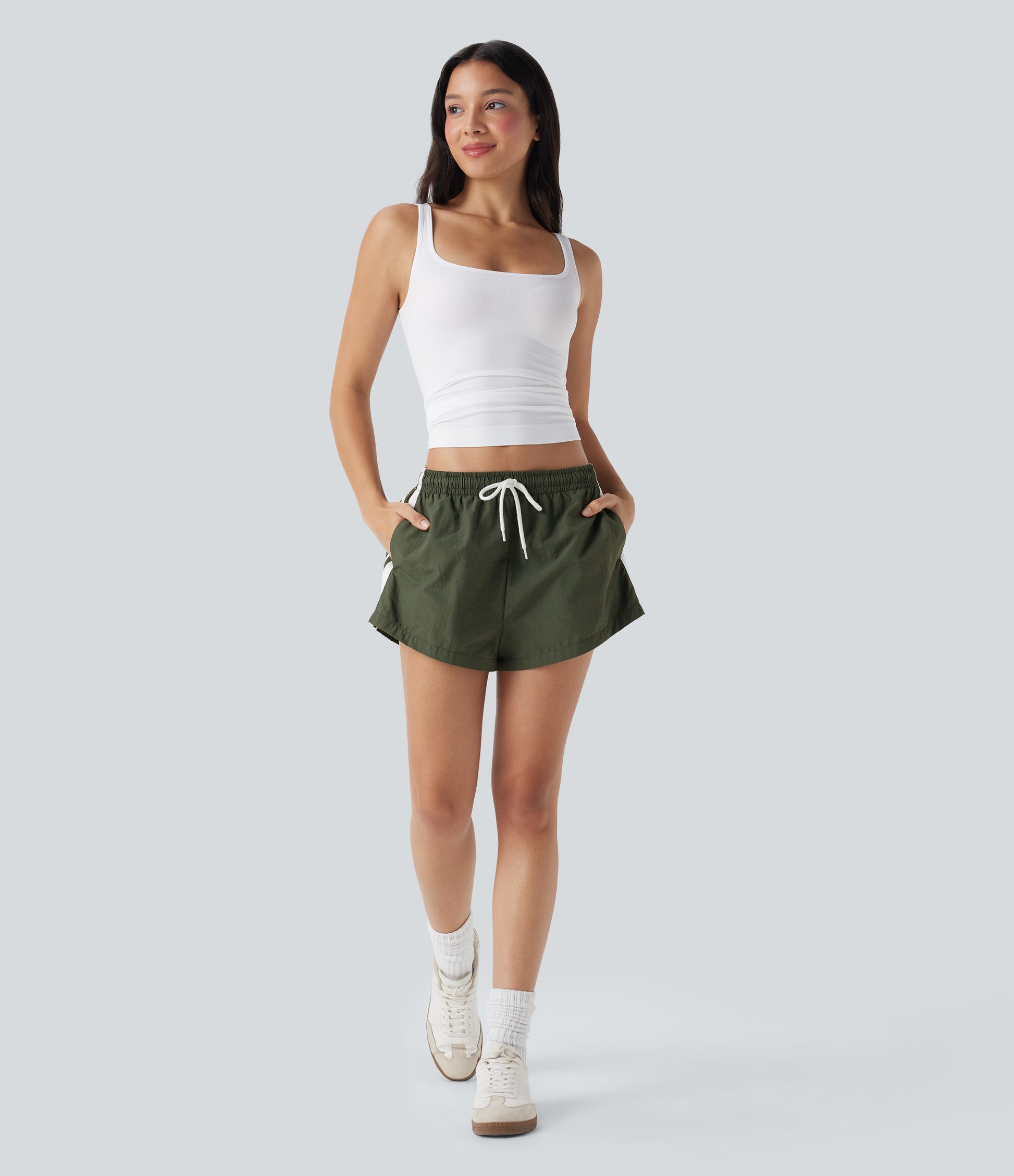 Low Rise Drawstring Color Block Built-in Underwear Casual Shorts with Pockets