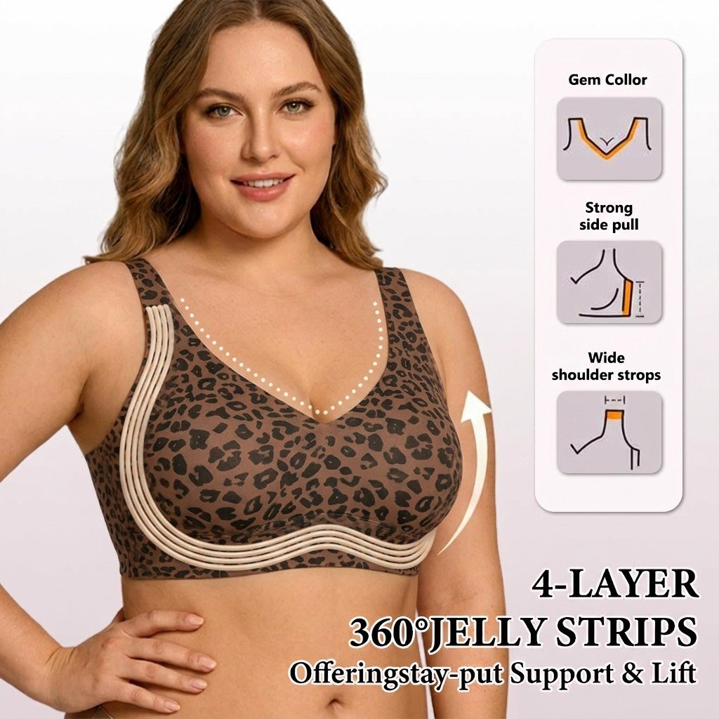 🏆Super Firming Leopard Print Jelly Bra | Women Wirefree Bras 👍No More Sagging Breasts