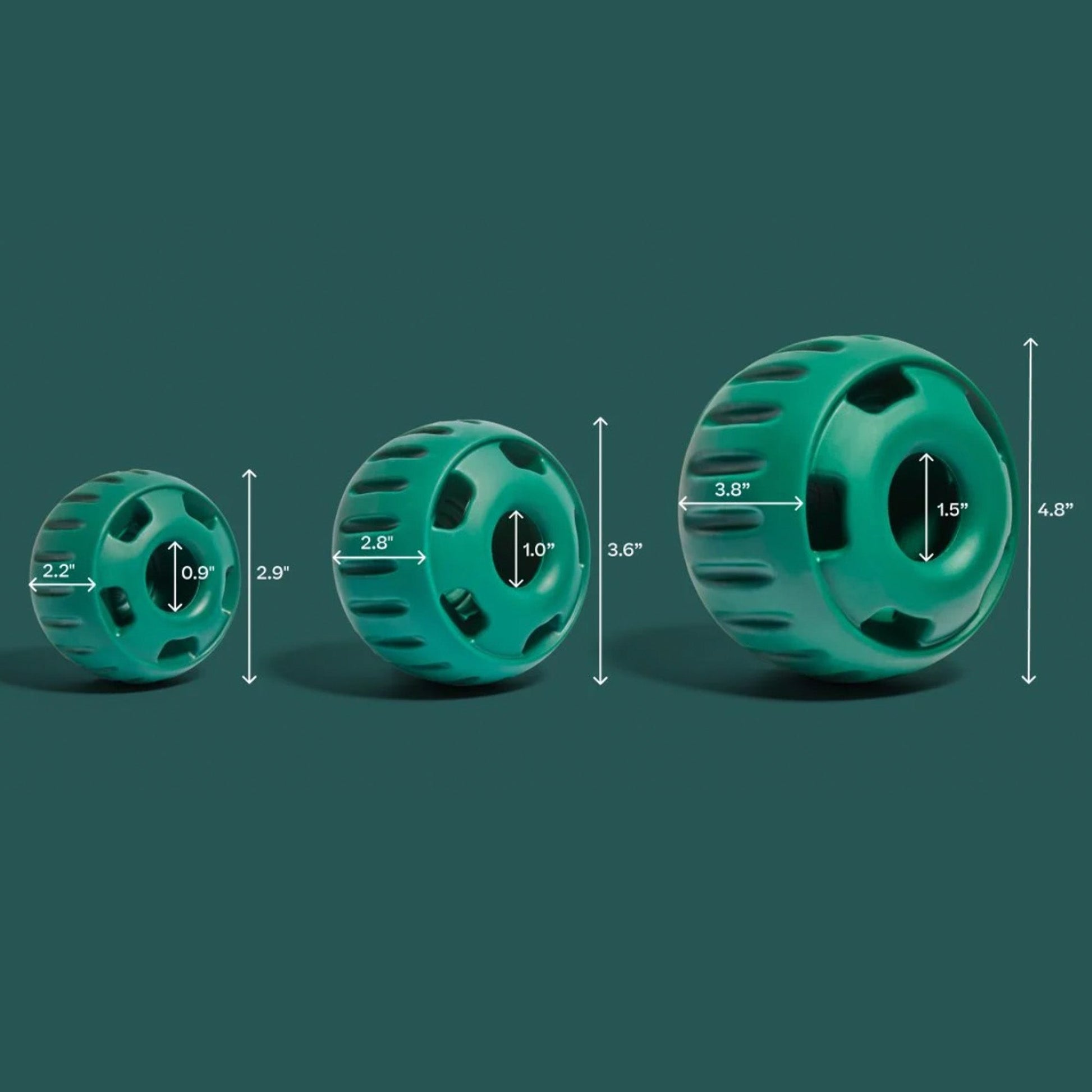 Pupsicle Toy is 2.9" in diameter and 2.2" tall with the hole in the middle being about 0.9"